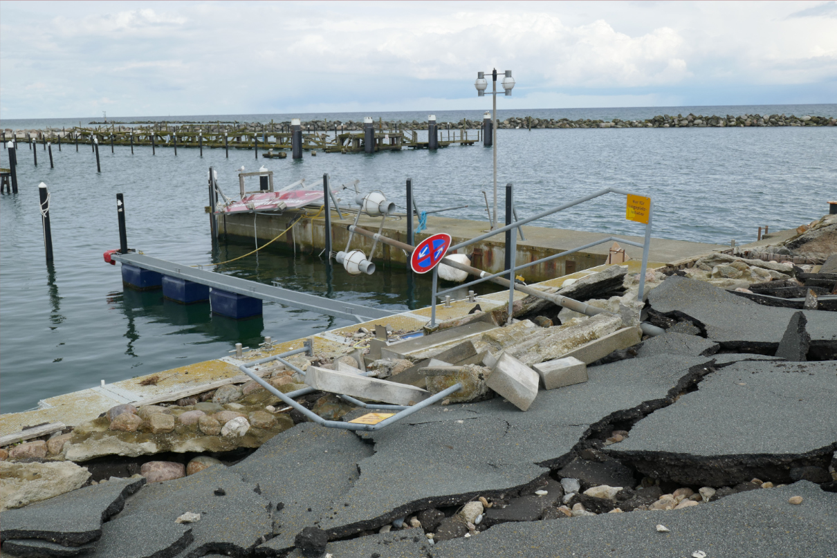 Im Oktober 2023 wurde der Hafen durch eine schwere Sturmflut stark beschädigt. Auch der Liegeplatz der NIMANOA wurde zerstört. Seither liegt das Boot an einem Hilfsliegeplatz nahe der Hafentankstelle. Der Wiederaufbau des Hafens ist bereits in der Umsetzung – und zeigt eindrucksvoll, wie Naturgewalten und Technik hier aufeinandertreffen.